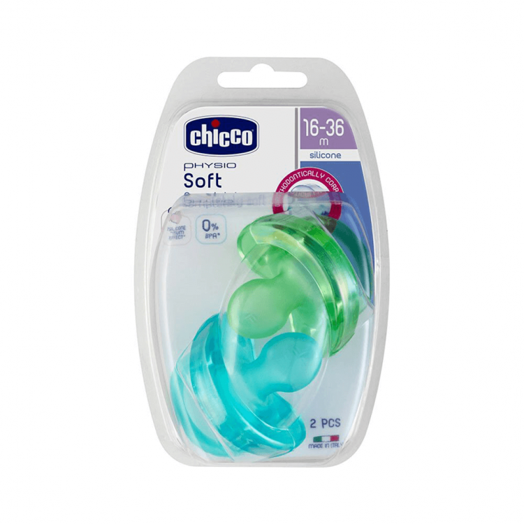 Chicco Chupeta Physio Soft Silicone Azul 16-36 + Dentífrico Morango -2unid