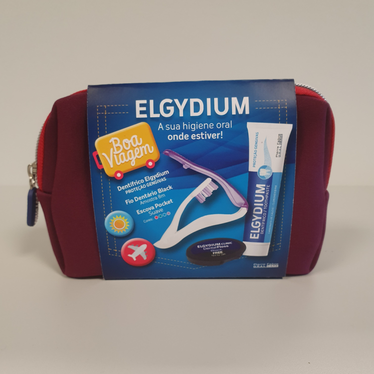 ELGYDIUM KIT VIAGEM é um kit composto pela escova ELGYDIUM POCKET, pelo dentífrico proteção gengivas 50 ml e por uma amostra de fio dentário black. Ideal para levar consigo onde quer que vá, em viagem, ou mesmo para ter no local de trabalho.