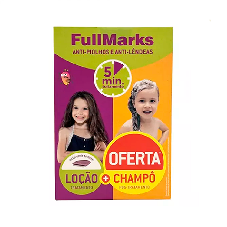 FullMarks Loção Anti-Piolhos e Anti-Lêndeas: Está com um problema de Piolhos em casa? FullMarks está aqui para ajudar! FullMarks Loção Anti-Piolhos e Anti-Lêndeas atua em apenas 5 minutos. Livre-se dos seu problema com Piolhos e Lêndeas. Lembre-se que sempre que ummembro da família necessitar de tratamento com FullMarks, deve verificar a existência de piolhos vivos na cabeça dos restantes membros da família pois os piolhos transmitem-se pelo contacto entre cabeças. Isto pode ser feito com um pente fino de plástico específico, normalmente disponível nas farmácias. Fazer o tratamento a todas as pessoas com piolhos no mesmo dia pode minimizar a possível reinfestação. FullMarks Champô Pós-Tratamento: FullMarks Champô Pós-Tratamento é o complemento ideal ao tratamento contra lêndeas e piolhos. Utilize o FullMarks Champô Pós-Tratamento após a aplicação do tratamento anti-piolhos. Utilize o champô após a Loção Anti-Piolhos e Anti-Lêndeas FullMarks, facilitando a remoção de lêndeas e piolhos mortos, com a ajuda do pente. O champô limpa o cabelo, eliminando os resíduos do tratamento anti-piolhos. Pode ser utilizado para a higiene de todos os membros da família com mais de três anos.