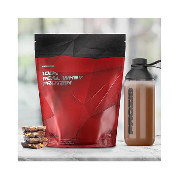 Proteína whey da mais alta qualidade para verdadeiros ganhos musculares! A proteína whey é um suplemento que dispensa apresentações. Conhecida pelo seu imbatível perfil nutricional, a proteína whey é um valioso recurso para pessoas ativas. O 100% Real Whey Protein da Prozis apresenta um concentrado de proteína whey de qualidade superior, numa fórmula altamente concentrada. Esta proteína pura, de alto valor biológico, contém um perfil de aminoácidos completo, com BCAA, que o vai ajudar a aumentar a massa muscular, assim como a manter o músculo que tanto lhe custou a ganhar. Sujeita a testes rigorosos em laboratórios avançados, a composição do 100% Real Whey Protein não esconde segredos. Além disso, graças aos processos tecnologicamente avançados aplicados na sua produção, este suplemento em pó foi instantaneizado para uma dissolução rápida e fácil, oferecendo-lhe um batido cremoso e sem grumos. Puramente simples: • Fórmula rica em proteína; • Rico em BCAA (Aminoácidos Ramificados); • Perfil de aminoácidos completo; • A proteína contribui para o crescimento da massa muscular; • A proteína apoia a manutenção da massa muscular; • Cientificamente testado e provado; • Garantido por certificados de qualidade; • Melhor relação qualidade/preço garantida.